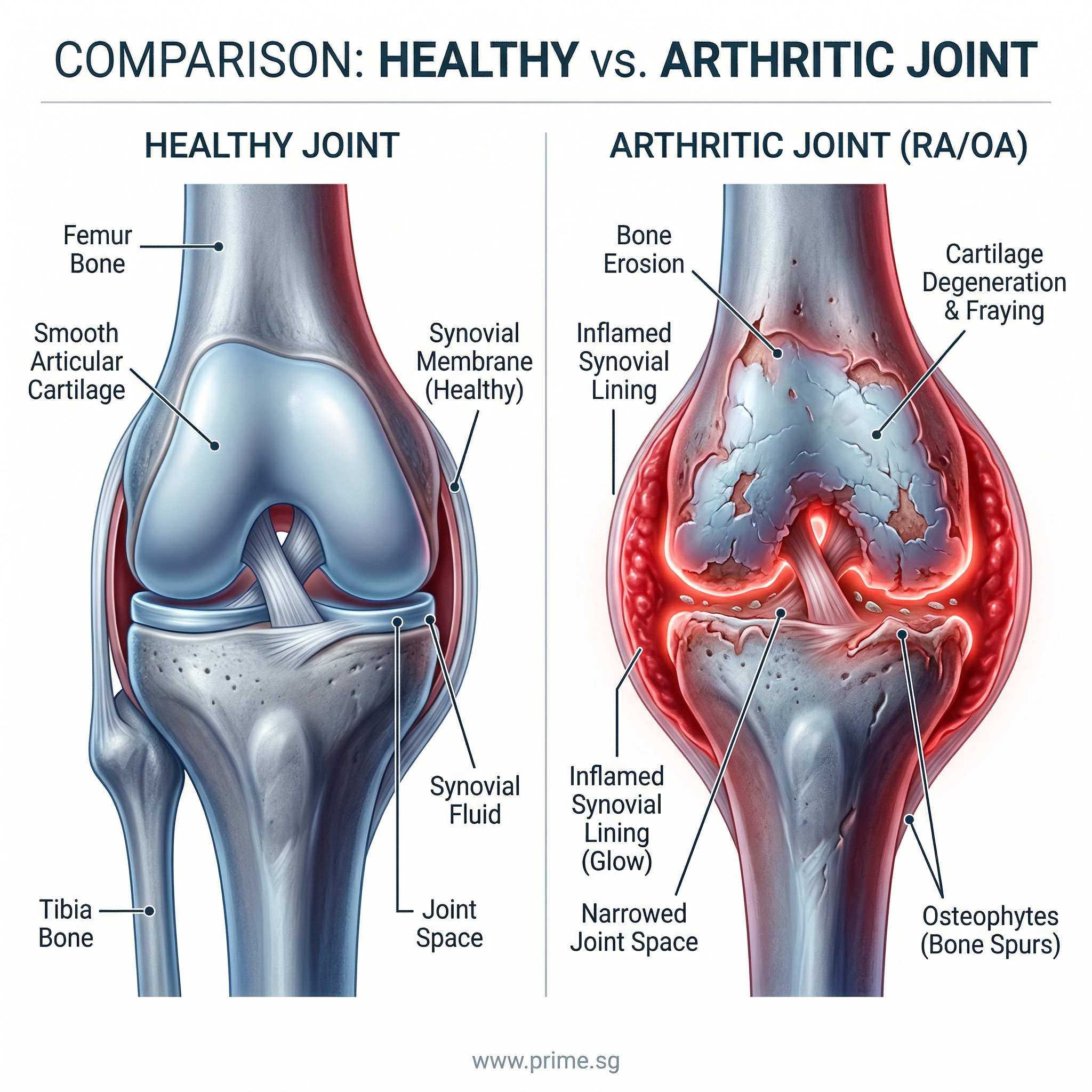 Without treatment, inflammation can damage cartilage and bone. Early diagnosis allows doctors to control inflammation and prevent long-term damage.