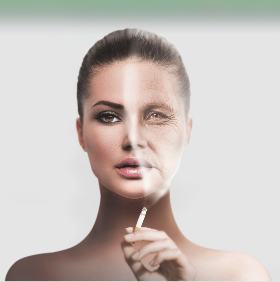 Visual depiction of a woman’s ageing process and the effects of smoking on health over time.