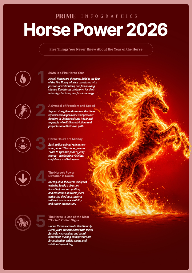 The Fire Horse doesn’t wait — and neither does the energy of this year. For those willing to move with it, 2026 offers opportunities to step forward, be seen, and build meaningful progress. PRIME