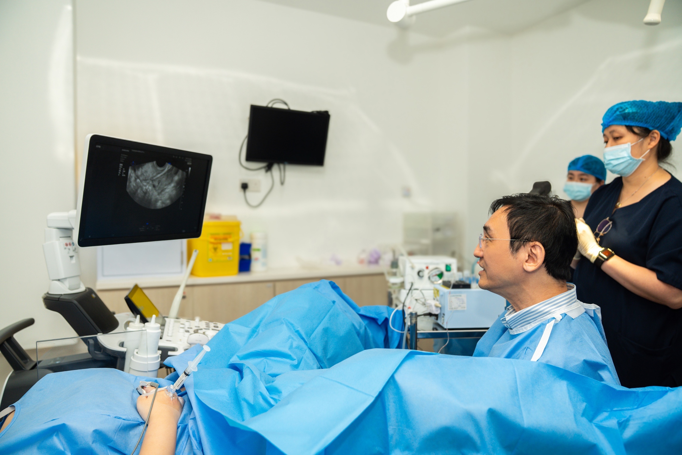 Dr Loh Seong Feei performing ultrasound-guided gynaecological procedure at The O&G Specialist Clinic.