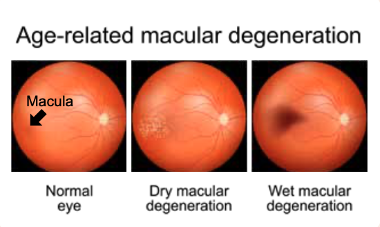 The retina is the light-sensing layer at the back of the eye, and the macula is the part of the retina that is involved with central vision. In AMD, a combination of age-related degeneration and sudden bleeding at the macula can result in the loss of fine vision and colour vision. AMD is a leading cause of vision loss in older adults, and research suggests that gut bacteria may have a role in its development.