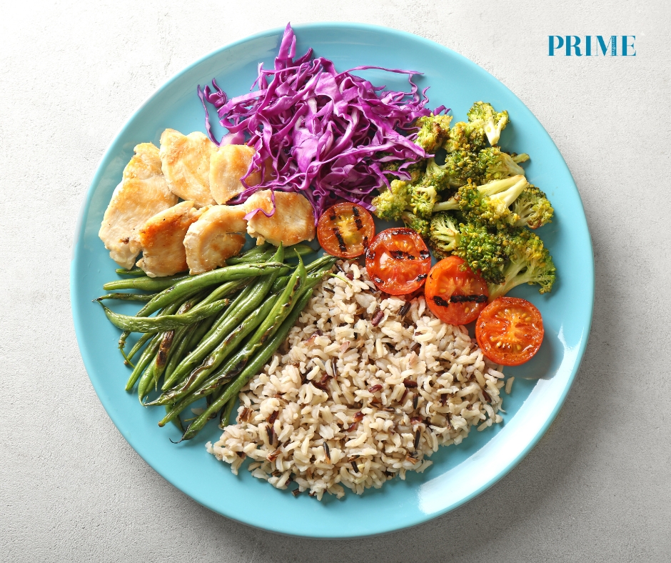 • ¼ whole grains (e.g., brown rice, wholemeal bread)